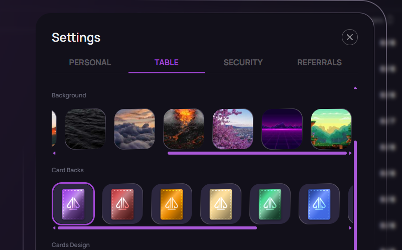 🎨 Table Background & Card Back Design Updates