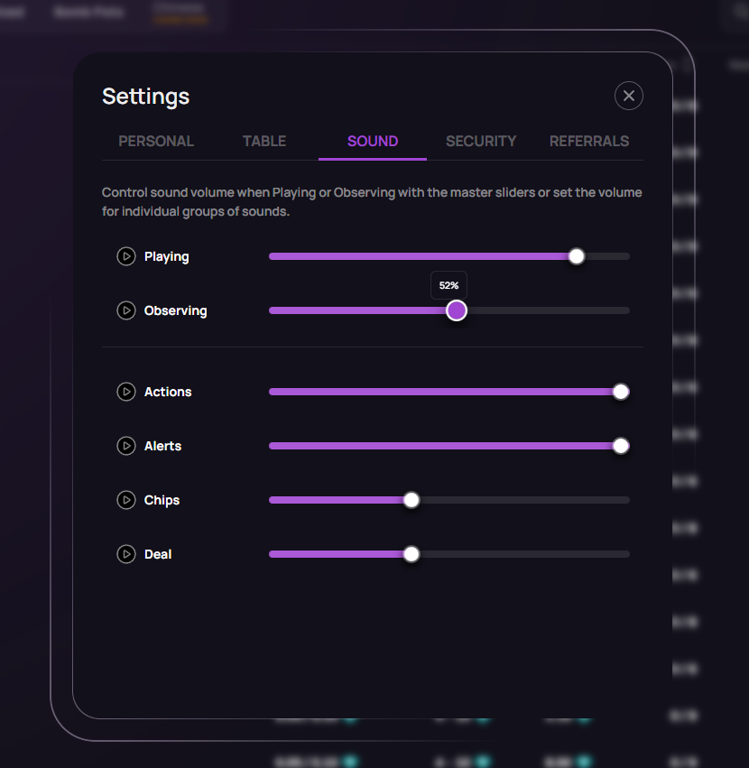 We’ve also added individual volume sliders for Actions, Alerts, Chips, and Deal sound groups, giving you more precise control over specific sound effects.
